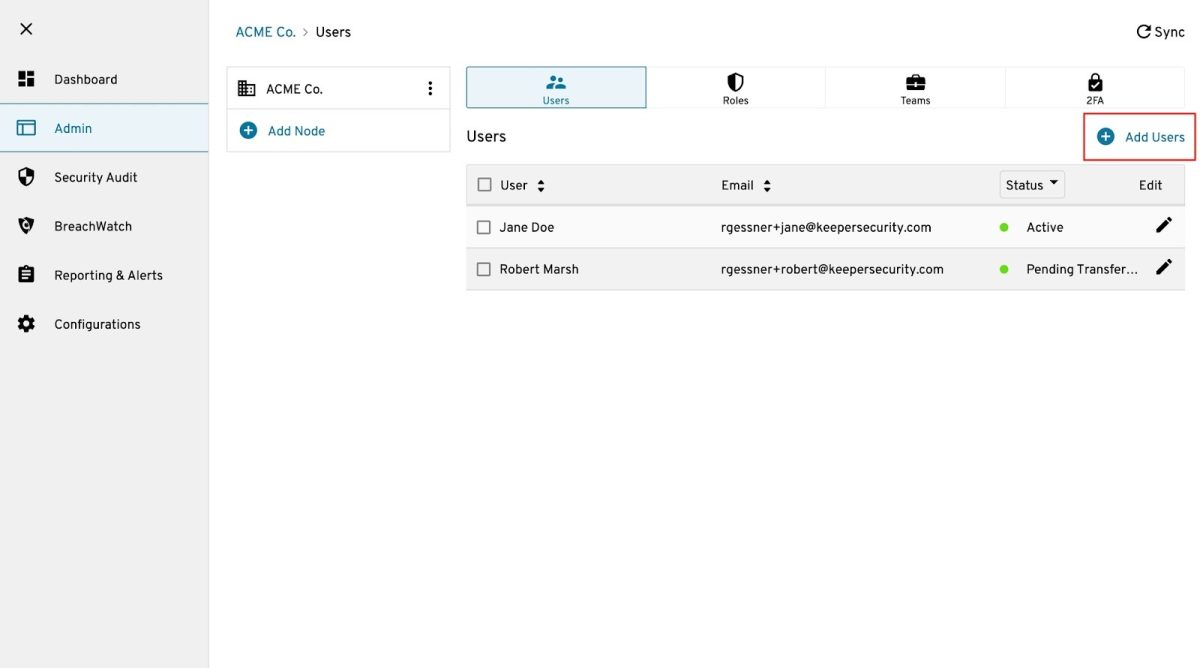 Also, for bulk user import: For larger deployments, admins can import users in bulk using a CSV file, automatically sending setup invitations to each user. Once users are added, Keeper automatically sends an email invitation prompting them to set up their account and complete onboarding.