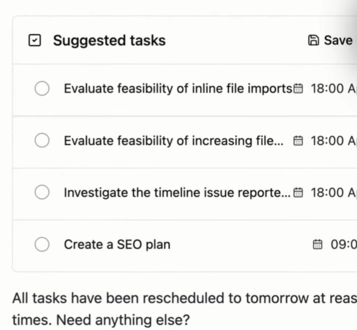 - AI task manager: Automatically adjusts your daily plan in real-time, accommodating unexpected events or changes in priorities.